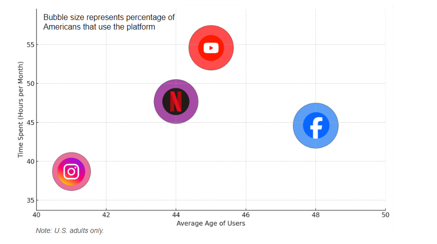 - Beyond its scale, YouTube stands out for its audience profile. It appeals to a younger demographic—more mature than Instagram’s user base, yet closely aligned with that of Netflix. However, unlike Netflix, the vast majority of content on YouTube is independently created, reinforcing its unique position as both a content platform and a social media hub. Subscribe today to stay ahead of the curve.