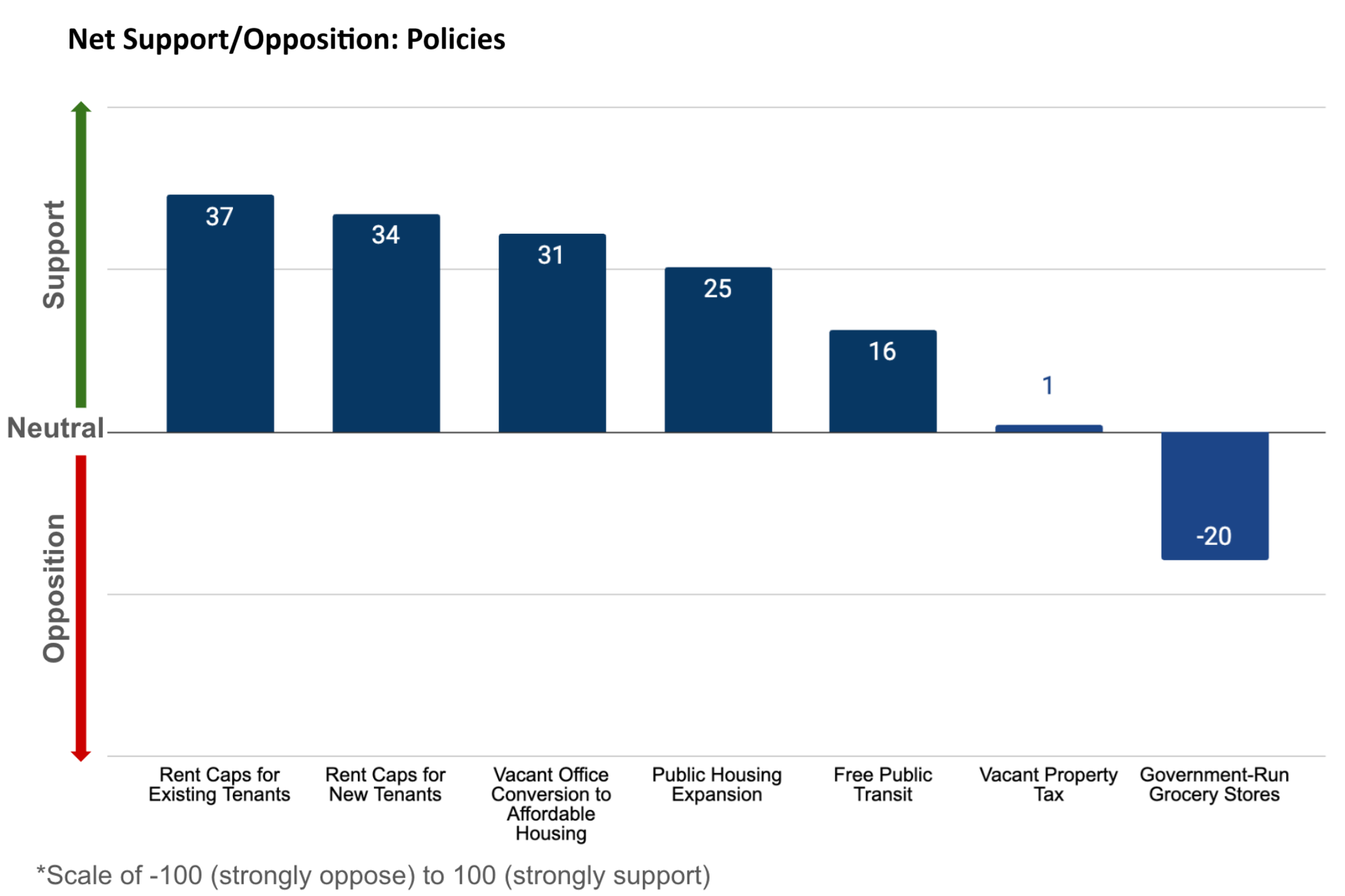 • Occam data indicate that the appeal of these proposals extends far beyond New York. Nationwide, Americans express net-positive support for key elements of this platform, with particularly strong backing for capping annual rent increases and converting vacant office space into affordable housing. While rent control measures garner the highest levels of public approval, lasting improvements in affordability will require policymakers to adopt initiatives that actively incentivize the construction of new housing.