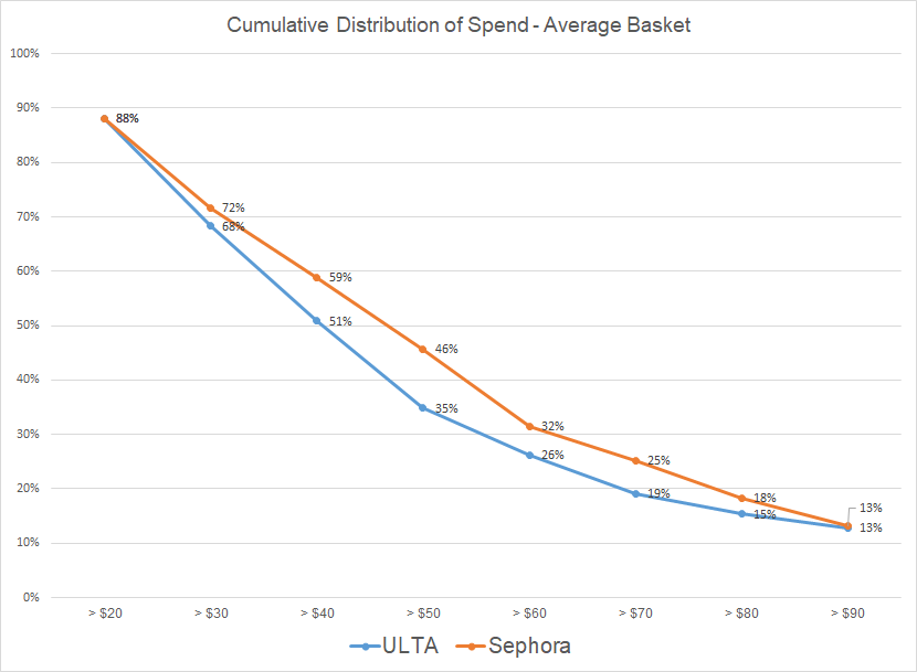 Average baskets for Sephora and Ulta are not too far apart but Sephora skews higher
